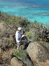 A few minutes of hiking brought us to some very large boulders at the top of the island. The view was breathtaking. Blue green sea with coral reefs everywhere. We stayed for over an hour looking around at every angle. |
